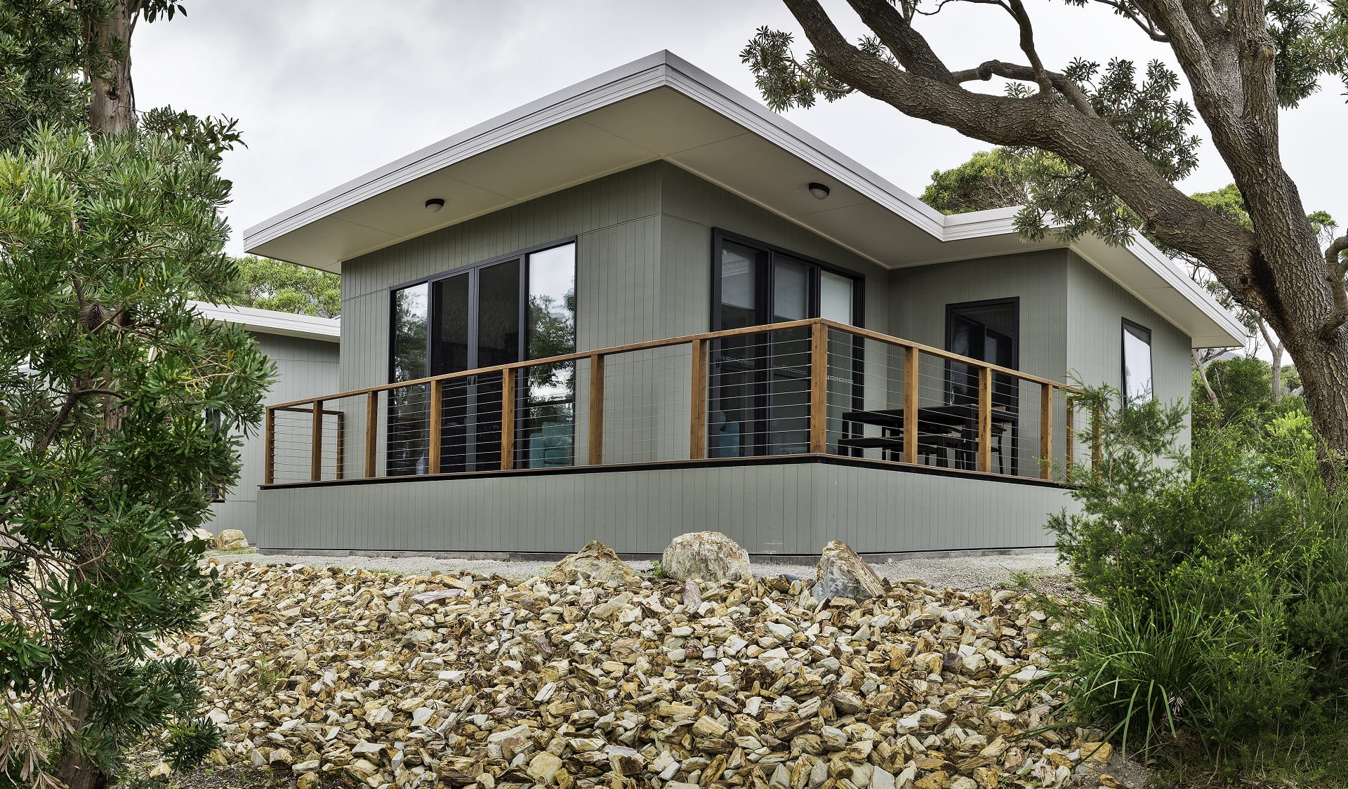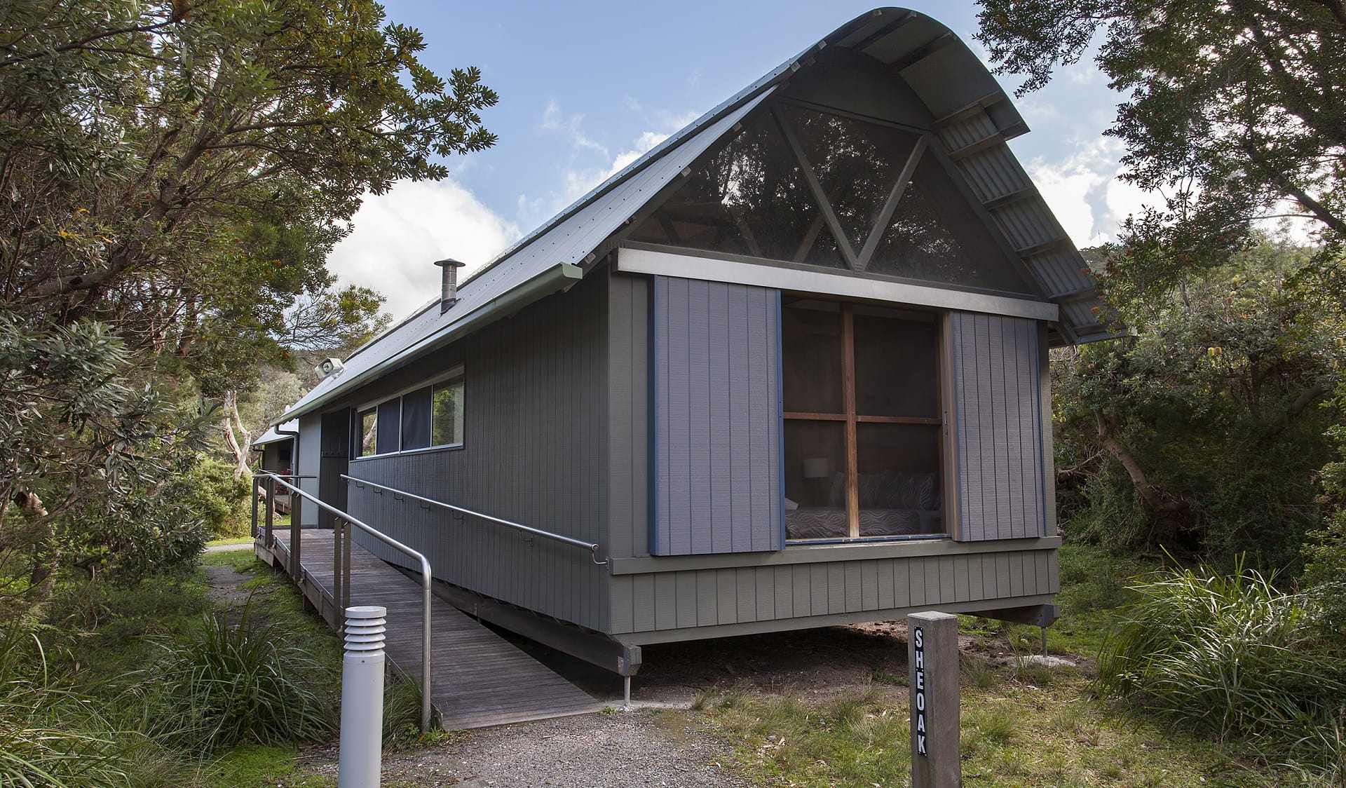 Sheoak and Wirilda cabins are self-contained and consist of two bedrooms, accessible bathroom, kitchen/living room and outside deck.