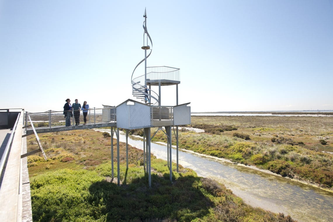 At the southern end of Cheetham Wetlands stands The Tower: A Monument to Migration and Aspirations. Artist Bill Kelly used the theme of bird migration as a symbol for human migration in the design of the Tower which provides an elevated birdwatching lookout and impressive views of Port Phillip and the city.