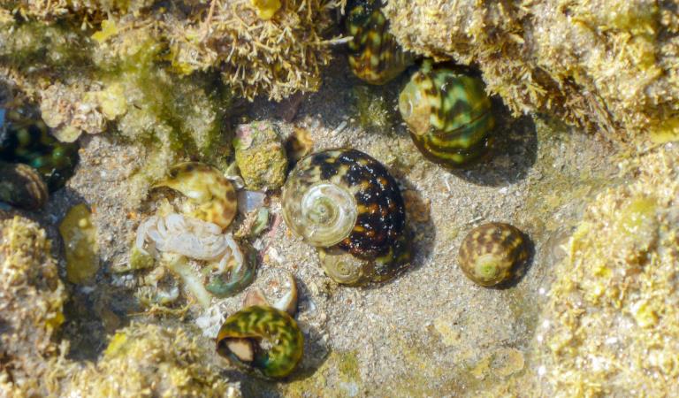 Sea life here prospers in the cold, crystal-clear, oxygen-charged waters of the Southern Ocean. Rock platforms are covered in algae while numerous sea snails cling tightly to the rocks to avoid being washed into the sea by the strong waves. The seabed at the river mouth is a mixture of reef and sand, providing a range of habitats that support diverse marine life.