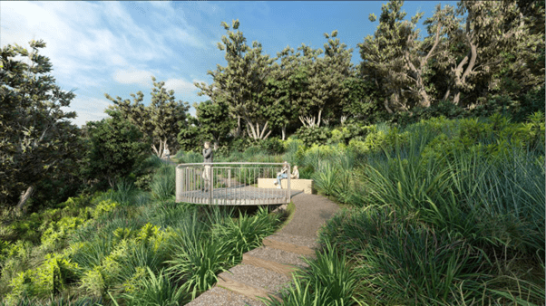 Below: illustrative image of the new viewing platform to be created on the Lake Edge Track.