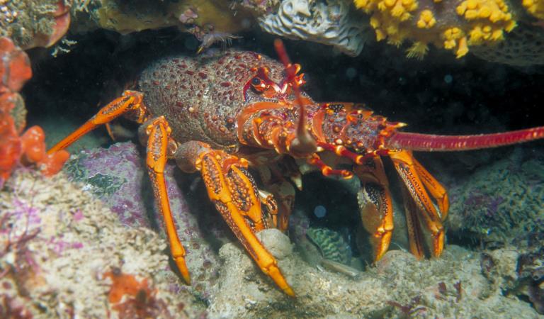 Twenty-five species of fish are found in the sanctuary including the Blue-throated Wrasse, Rosy Wrasse and Sea Sweep, while harmless Port Jackson Sharks, Sparsely-spotted Stingarees, and Rusty Catsharks are often seen particularly around reef ledges.