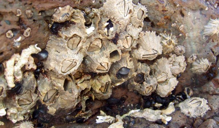 The shore rock platforms are covered in swathes of Neptune’s Necklace, a brown seaweed that looks like strings of beads. Marine life abounds in the deeper rock pools, with animals including octopuses, decorator crabs, chiton, and schools of tiny silver fish.