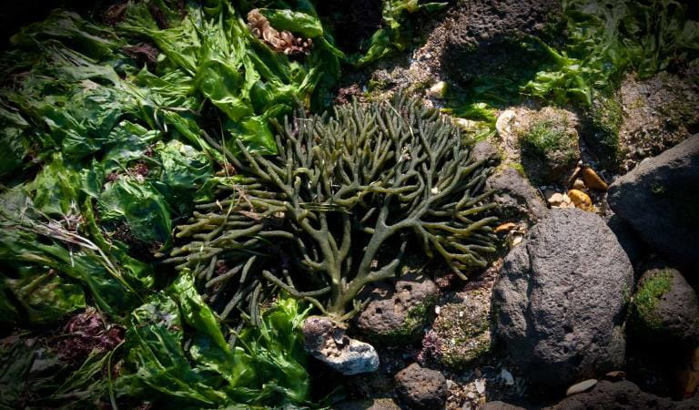 Beneath the water, countless marine animals and plants can be found. Exposed sections of rock support a range of life including tube worms, anemones and many different colourful algae. Prickly sea urchins are abundant near crevices, while sponges grow plentifully in dark corners. Small sharks and skates patrol the surrounding eelgrass beds and muddy seafloor.