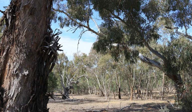 The Mt Terrick Terrick picnic and camping areas and the White Cypress Pine forest can be accessed via the Sylvaterre-Timms Lake Road. The historic Davies homestead and associated grasslands can be accessed via the Mitiamo-Kow Swamp Road. Visitors to the grasslands should take care when parking or pulling over. Roadside verges support long grass and native wildflowers which may conceal deep holes or boggy areas. Parking half on and half off the road is dangerous as local vehicles sometimes travel at high speed along rural roads. Please note that clay roads are suitable for access in dry weather only.