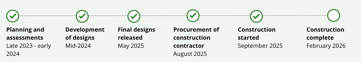 Construction is expected to start mid-September 2025 and be completed in early 2026.