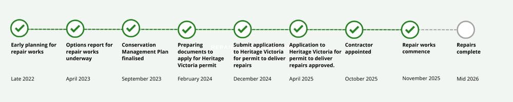 To support these activities, the full 327-metre length of Flinders Pier remains open for public access. The unsafe 180-metre timber approach section will remain closed until a course of action has been determined.