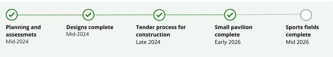 Construction is progressing well on the Oaks and the Ashes – the two renewed ovals. Works on the sports fields are expected to be complete by winter 2026.